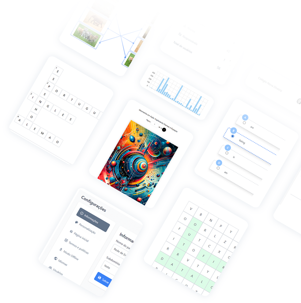 A ferramenta Atividades do Edumais oferece avaliações diversificadas, como provas, questões objetivas e discursivas, jogos interativos e reconhecimento de fala, garantindo uma experiência de aprendizado dinâmica e inovadora.